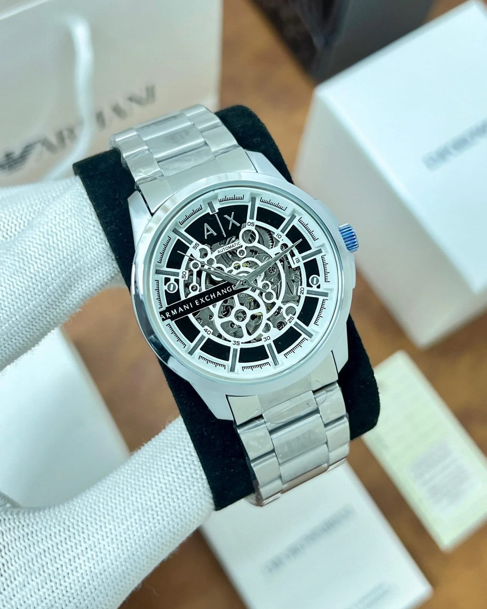 -High End Stainless Steel Bezel, Armani Exchange Crown, Case & Bracelet