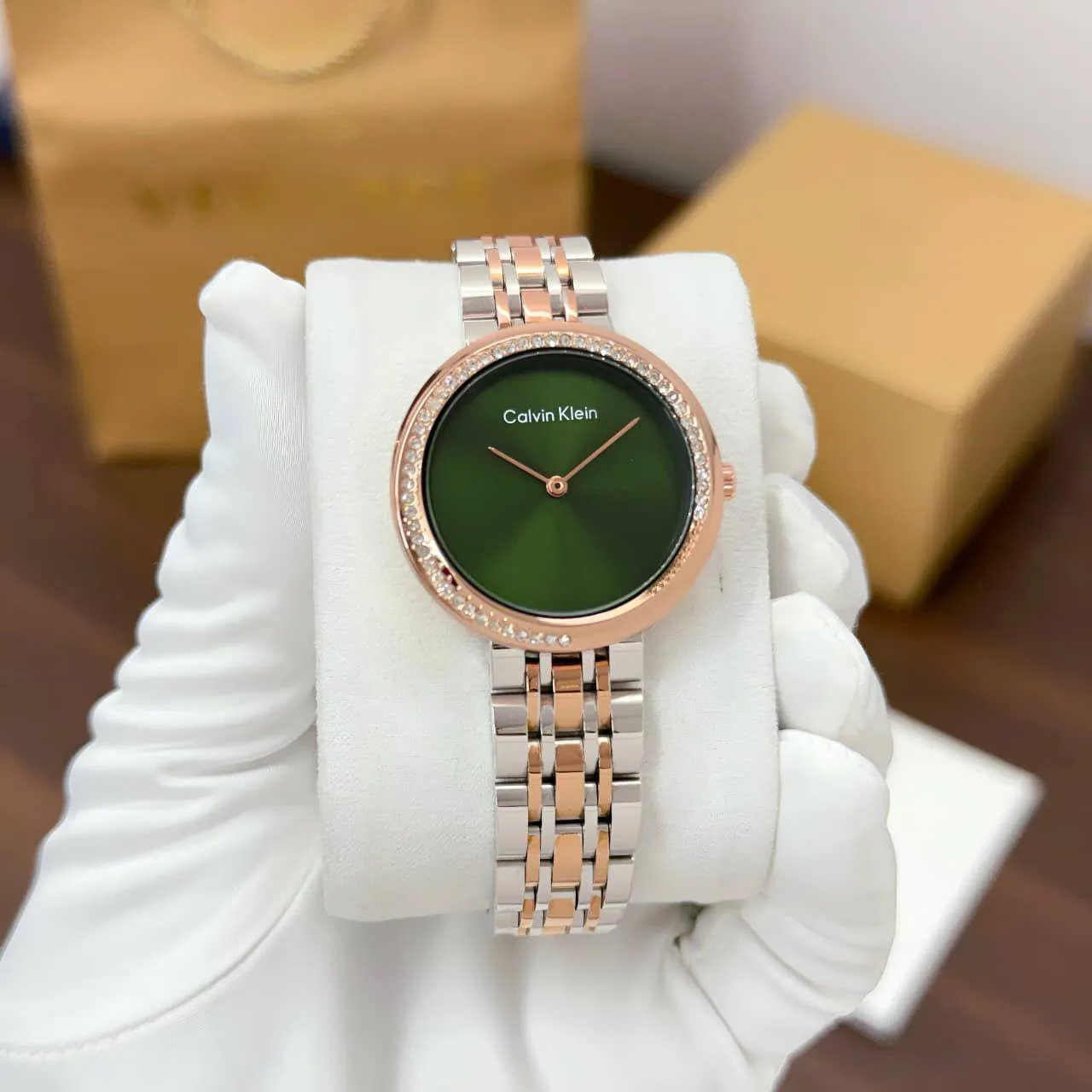 • Dial: Green CK-branded dial with minimalist design