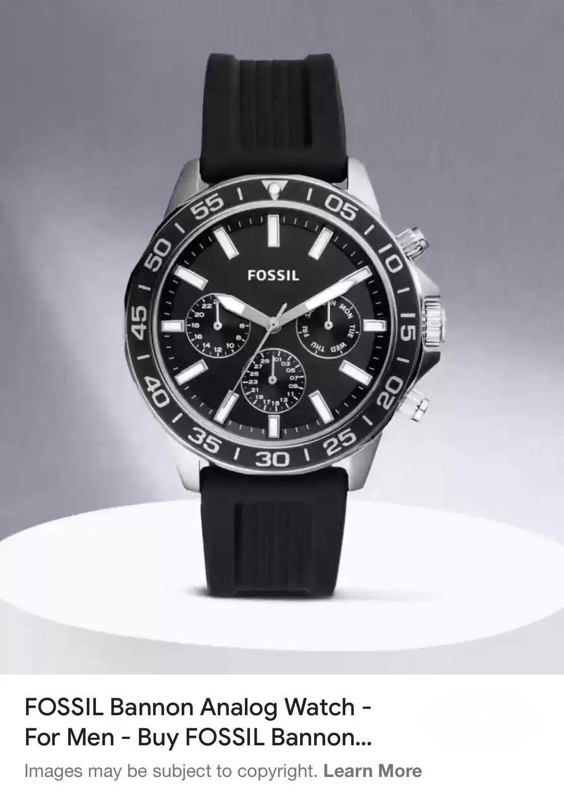 ⌚️Fossil bannon Men Quartz Black Dail Multi-Function Silicone Watch BQ2494