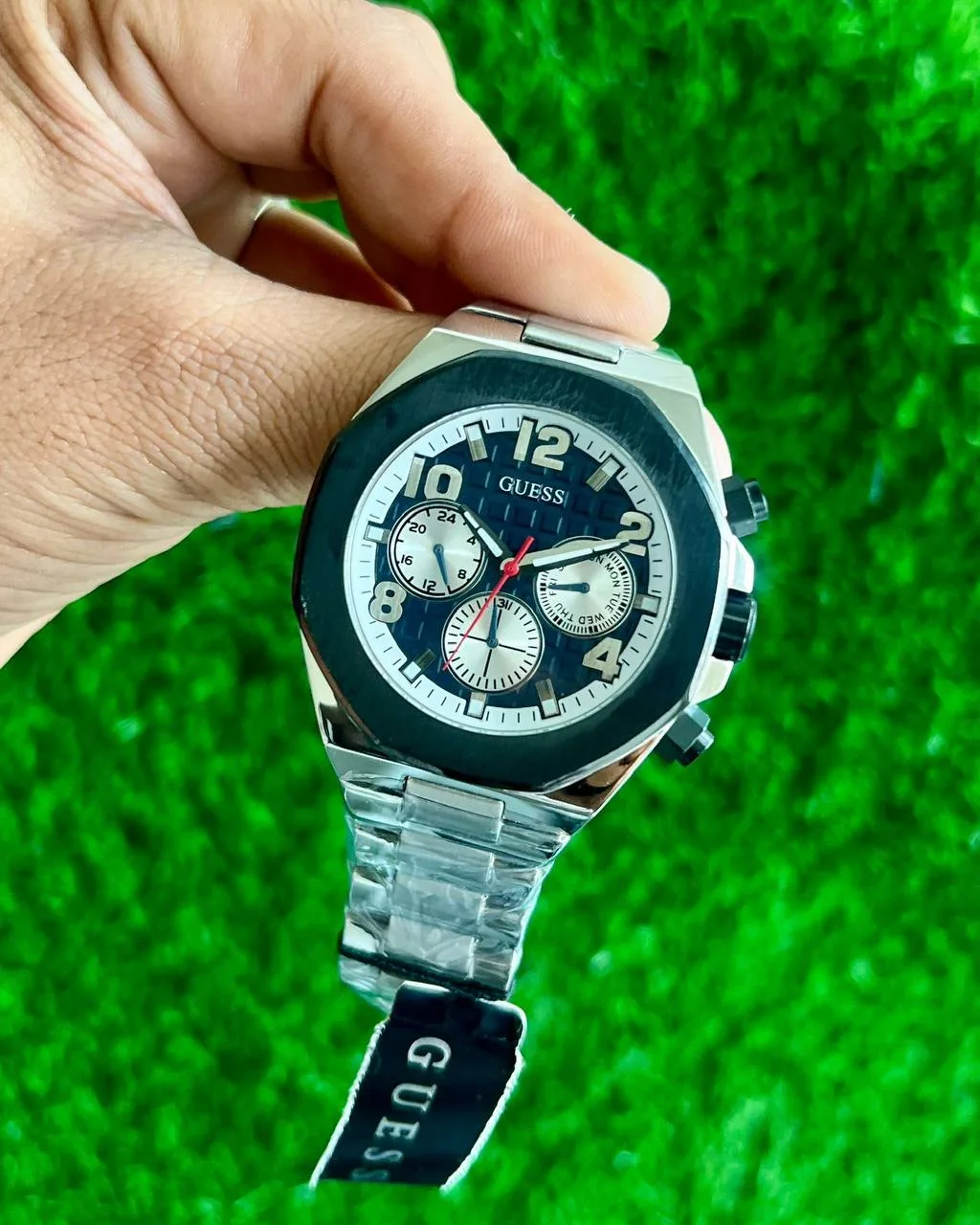 With its striking blue dial and polished stainless steel strap, the Guess Empire stands out as a true statement accessory for any occasion — from business meetings to evening gatherings.