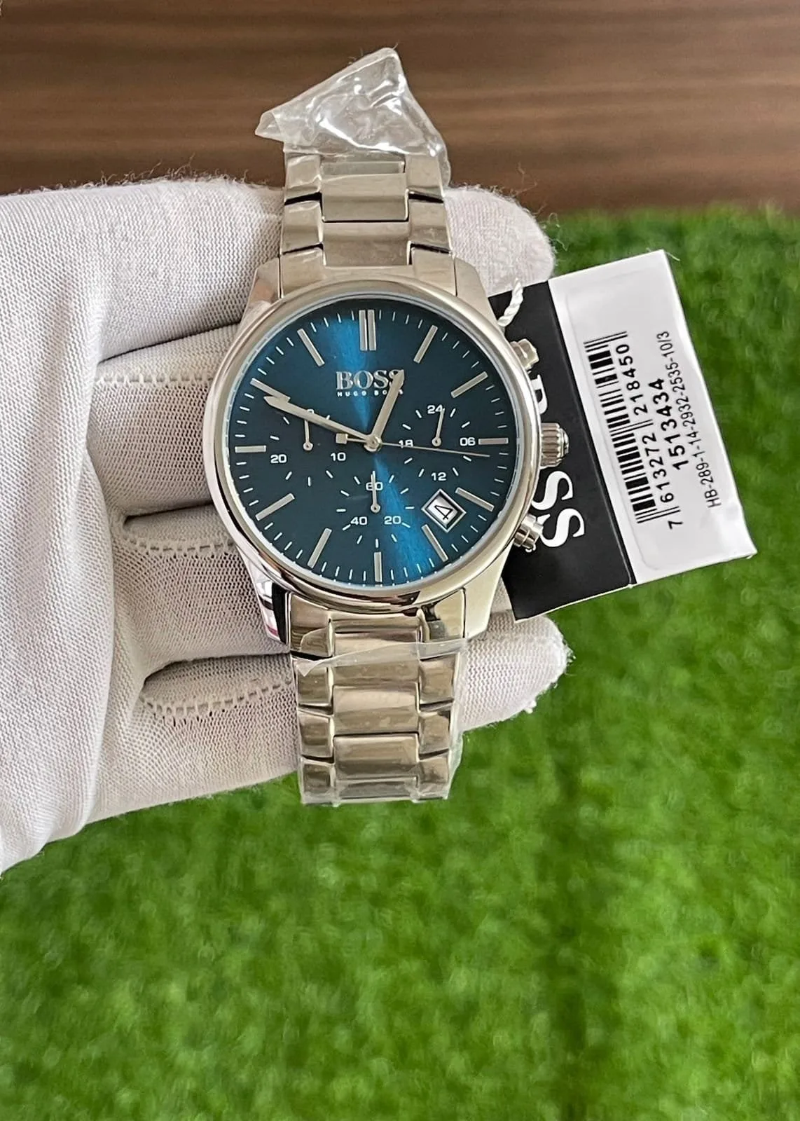 ..The Boss Admiral watch pays is a tribute to iconic diver’s watches, that ventured down to previously unexplored depths. A prominent unidirectional rotating bezel surrounds a striking blue dial with luminescent hands and indexes, while the bold case includes pushers and crown protection. A striking design is offered in multiple color combinations, with a stainless steel bracelet that adds a perfect finishing touch to your look.