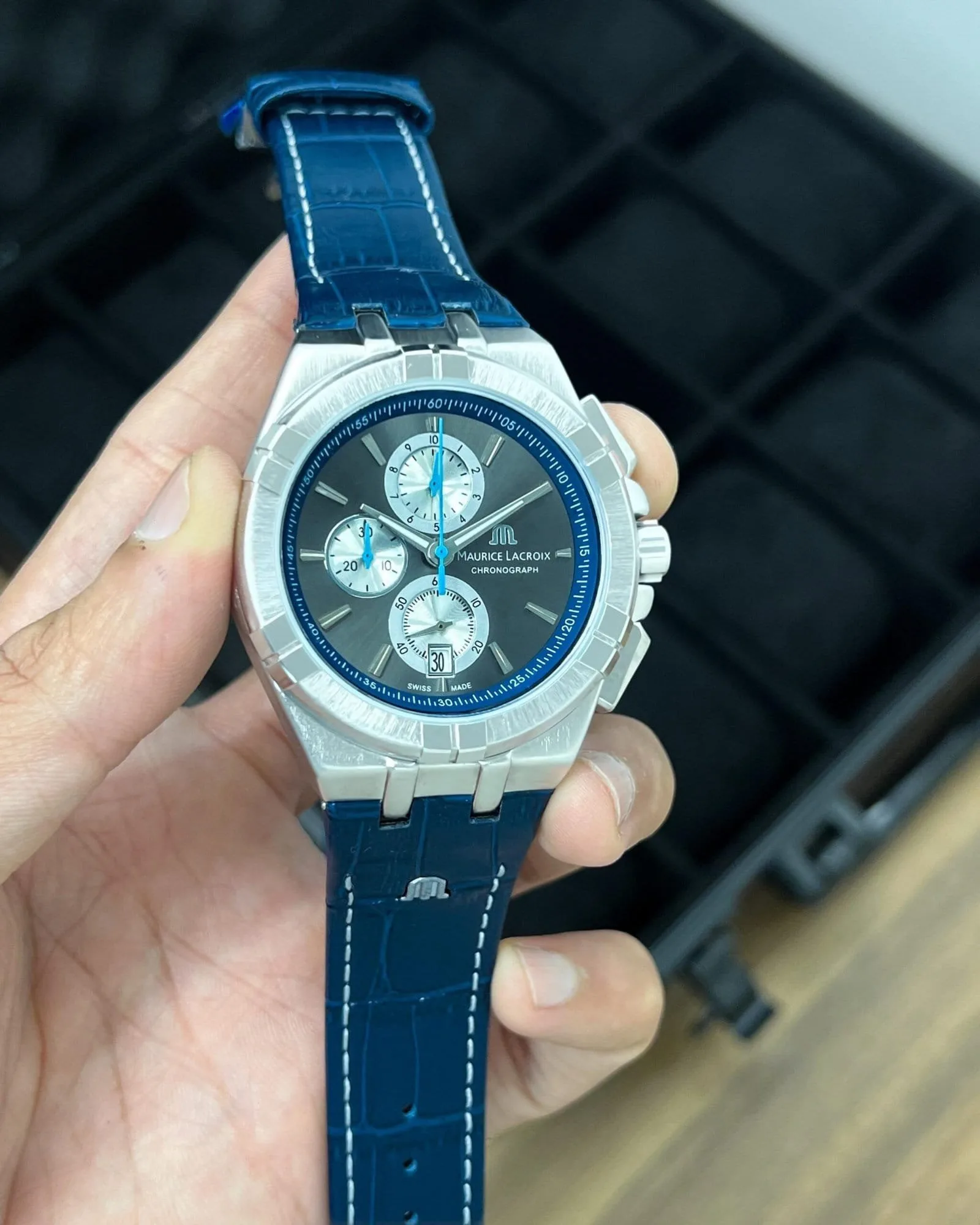 -Classic Grey, Blue & Silver Eye-Catching Dial