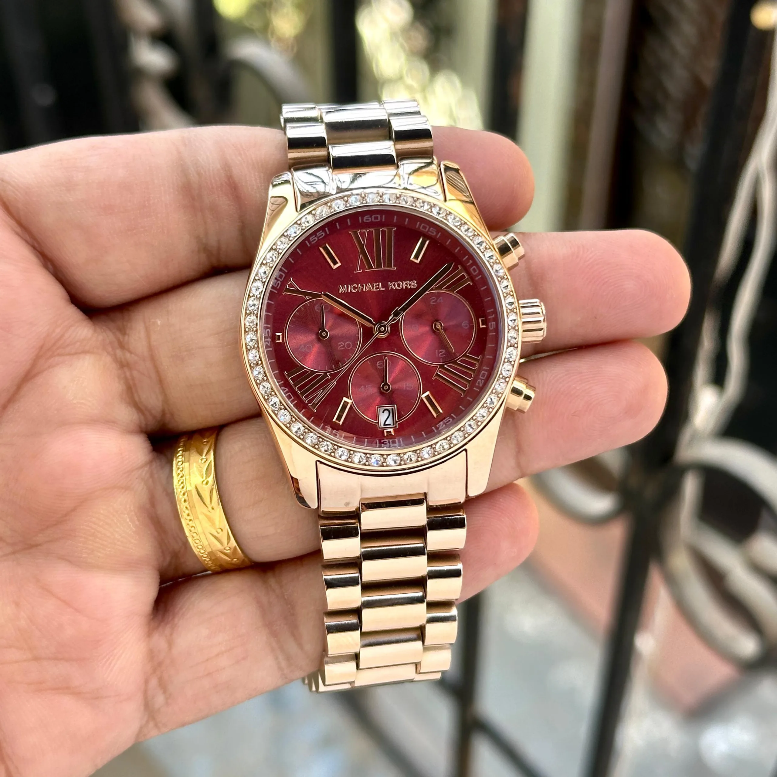 Make a bold style statement with the Michael Kors Lexington MK7275 — a stunning chronograph watch designed for women who love standout luxury. Featuring a rich red dial paired with a rose gold finish, this timepiece brings together elegance, functionality, and modern fashion.