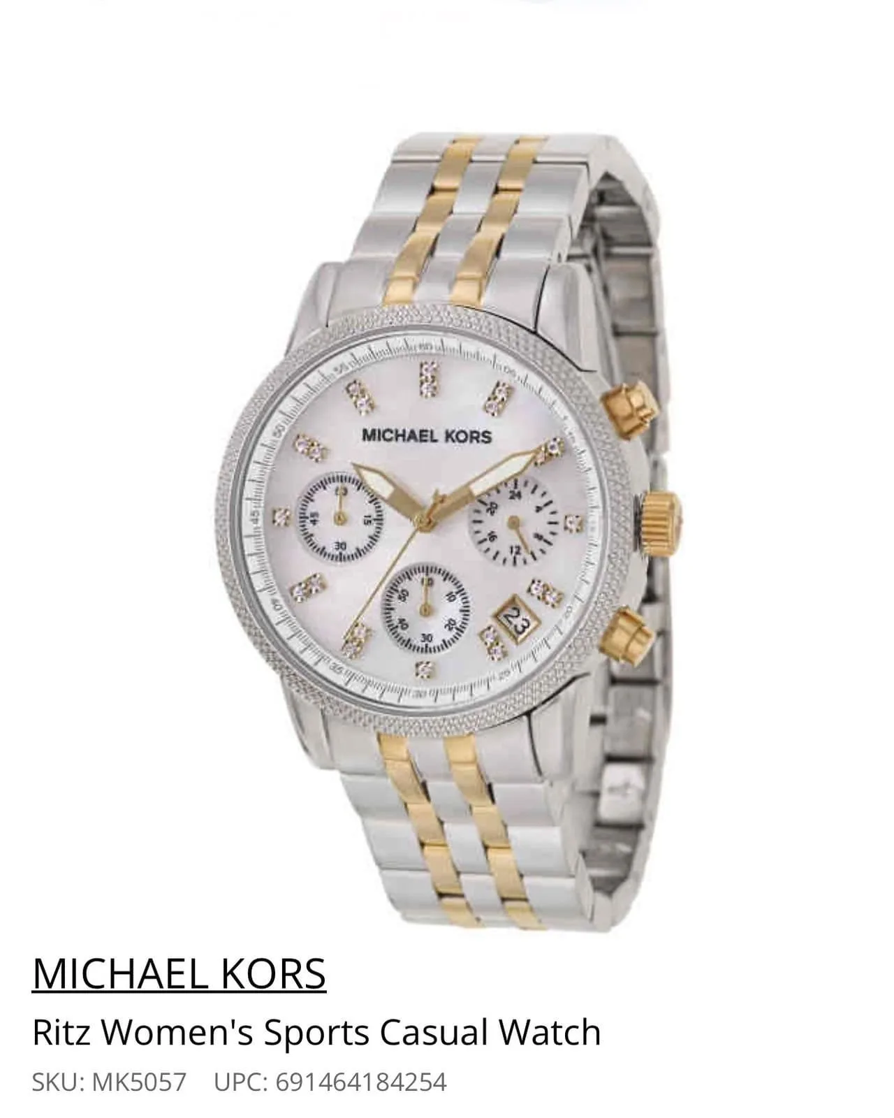 Michael Kors, Ritz, Women’s Watch, Stainless Steel and Yellow Gold Plated Case, Stainless Steel and Yellow Gold Plated Bracelet, Japanese Quartz (Battery-Powered), MK5057