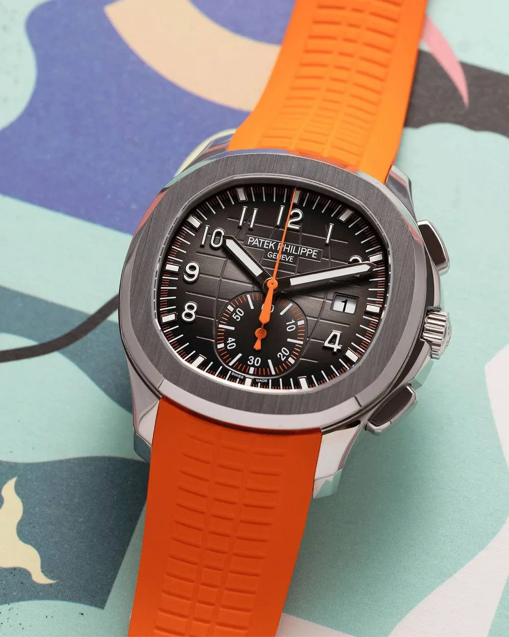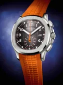 A bold and sporty luxury timepiece, the Patek Philippe Aquanaut Travel Time #5164R is designed for modern travelers who value precision, functionality, and standout style. With its vibrant orange dial and dual time capability, it delivers both performance and presence on the wrist.
