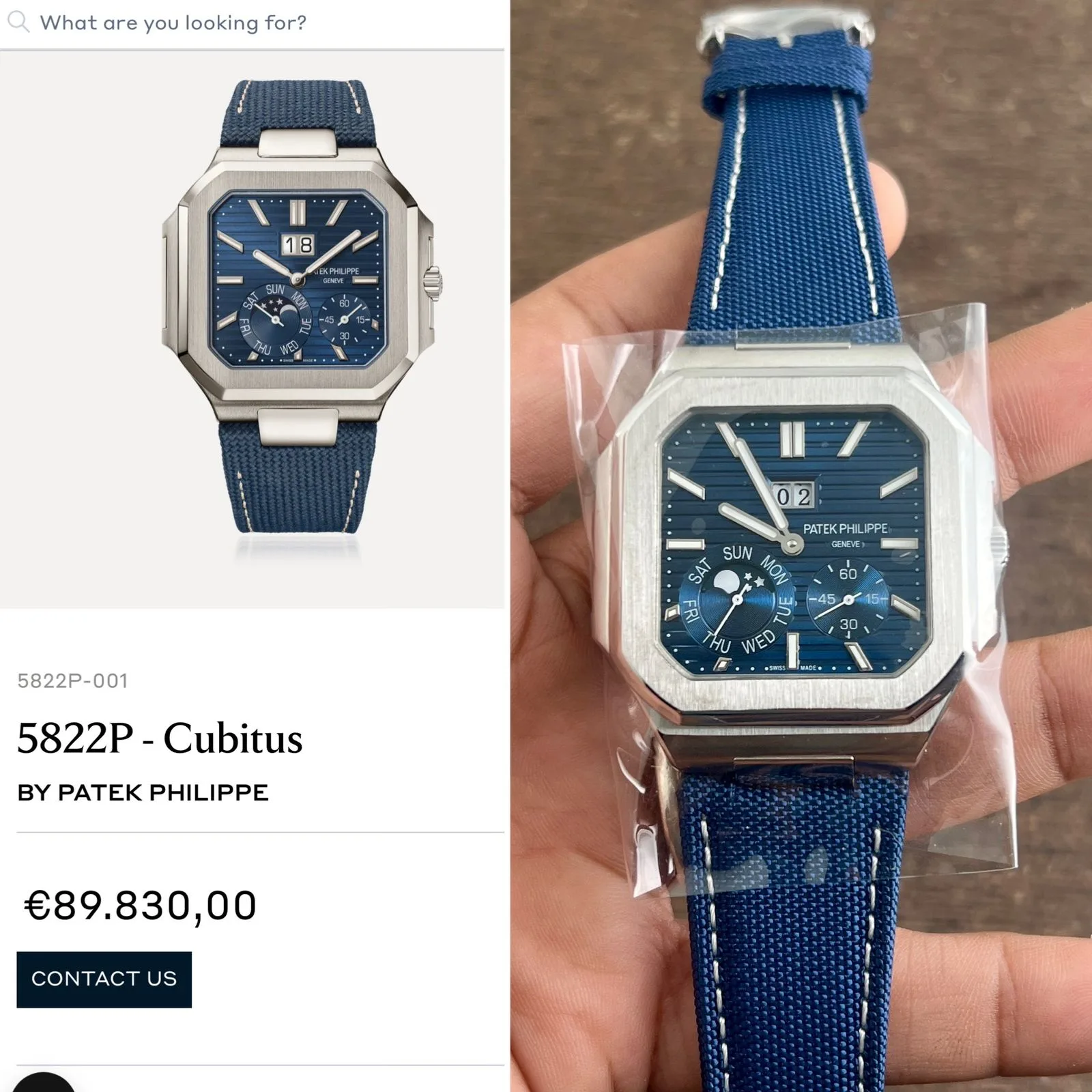 The Patek Philippe Cubitus 5822P-001 is a luxurious wristwatch designed for men who appreciate precision, elegance, and high-end craftsmanship. Its platinum blue dial and sophisticated features make it perfect for formal and casual occasions alike.