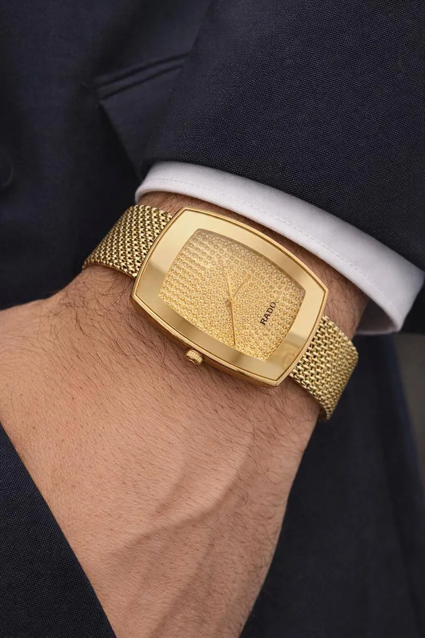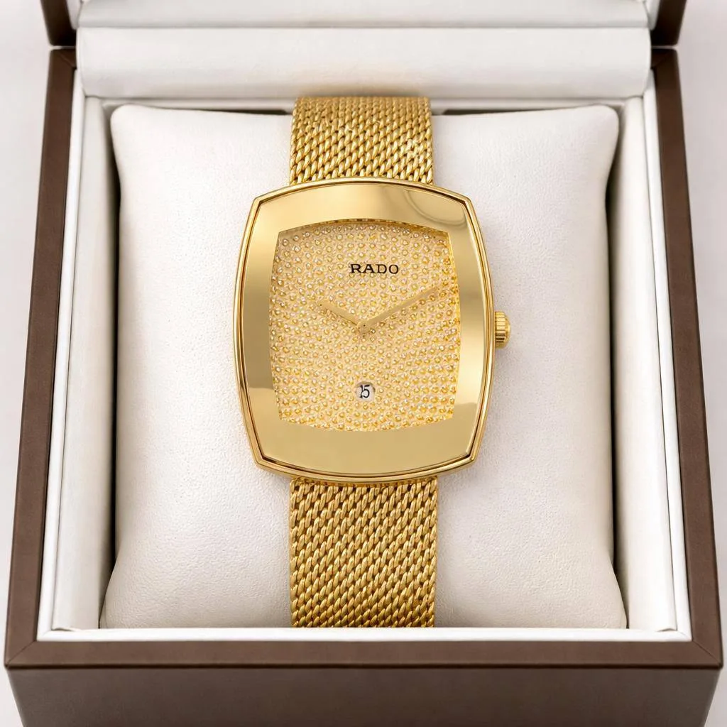 A refined golden-tone timepiece designed for men who appreciate classic luxury with everyday reliability. This RADO special model delivers a rich golden look paired with dependable quartz performance.