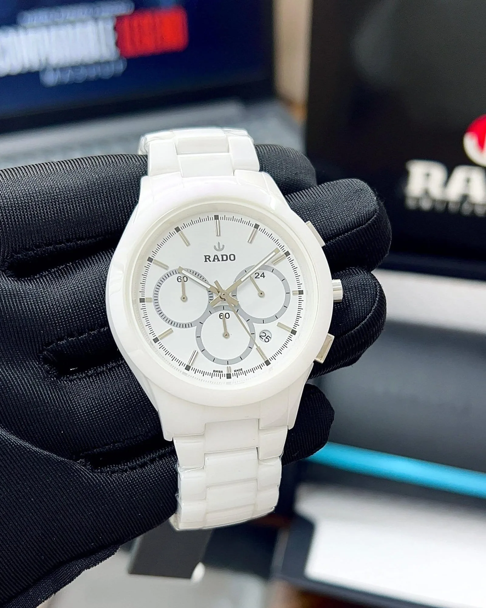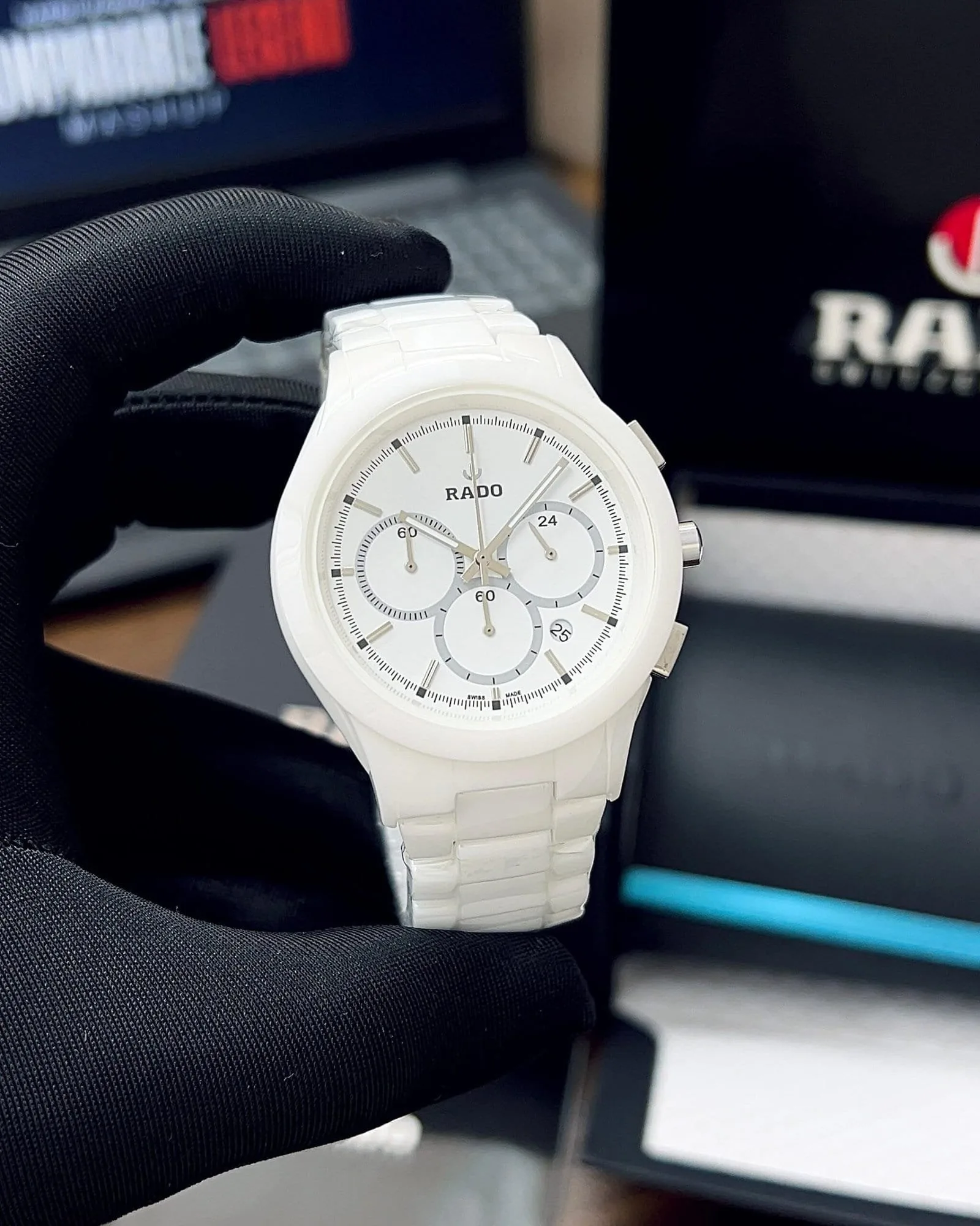 🌟 RADO Chronograph machine now Available in full white Collection & Ready to ship today 🌟