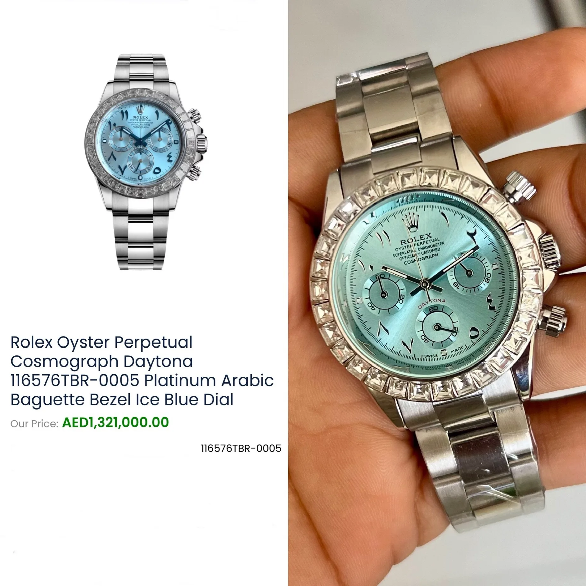 🔥. This Rolex Daytona model is presented as a unique version with an Arabic ice blue dial, making it a distinctive and eye-catching timepiece🔥