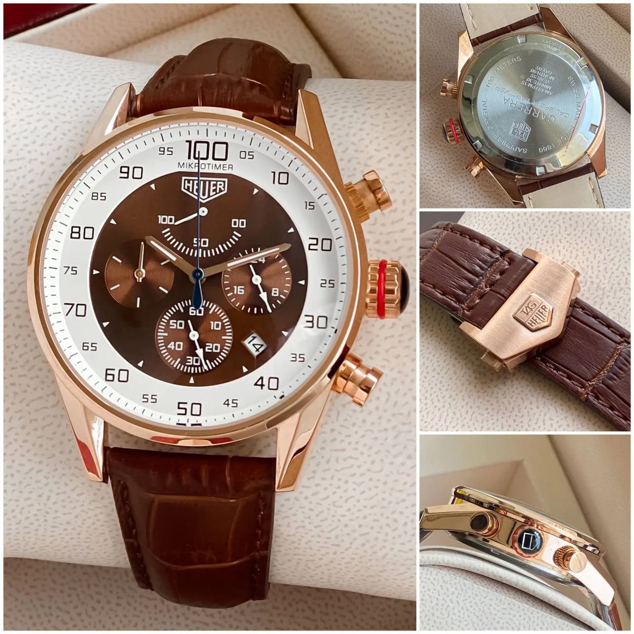 This TAG Heuer men’s watch from the 7AA Premium Collection features a finely brushed steel case with a brown dial and sapphire glass, delivering a strong, premium look with dependable everyday performance.
