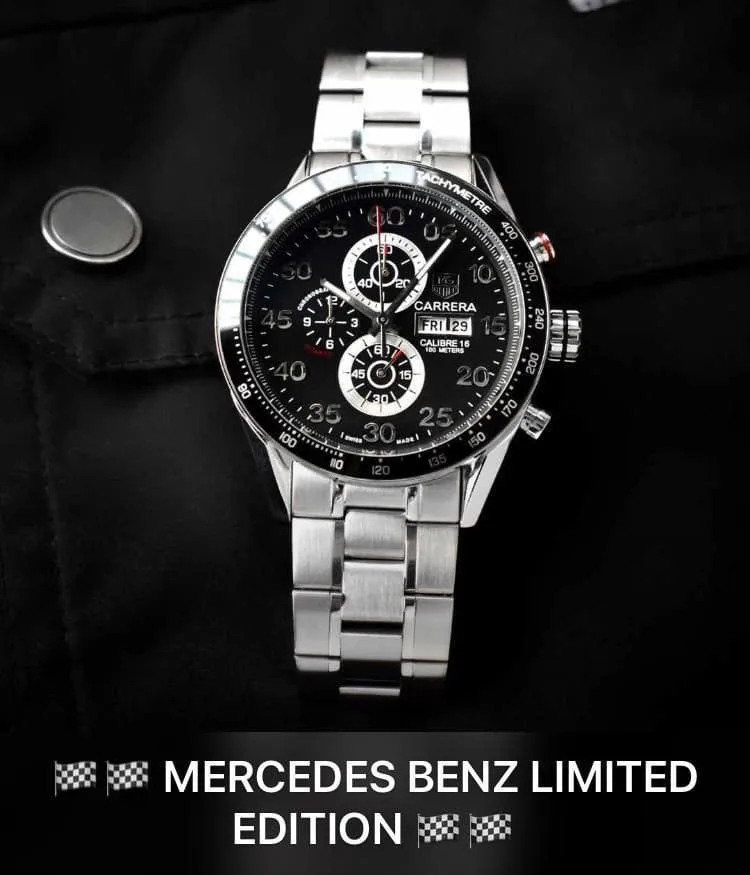 ⭐️ *The sleek, heritage-style design of the TAG Heuer Carrera Calibre 16 Day-Date hearkens back to the collection’s earliest racing roots. The uncluttered, all-black dial is legible in even the most challenging conditions.* ⭐️