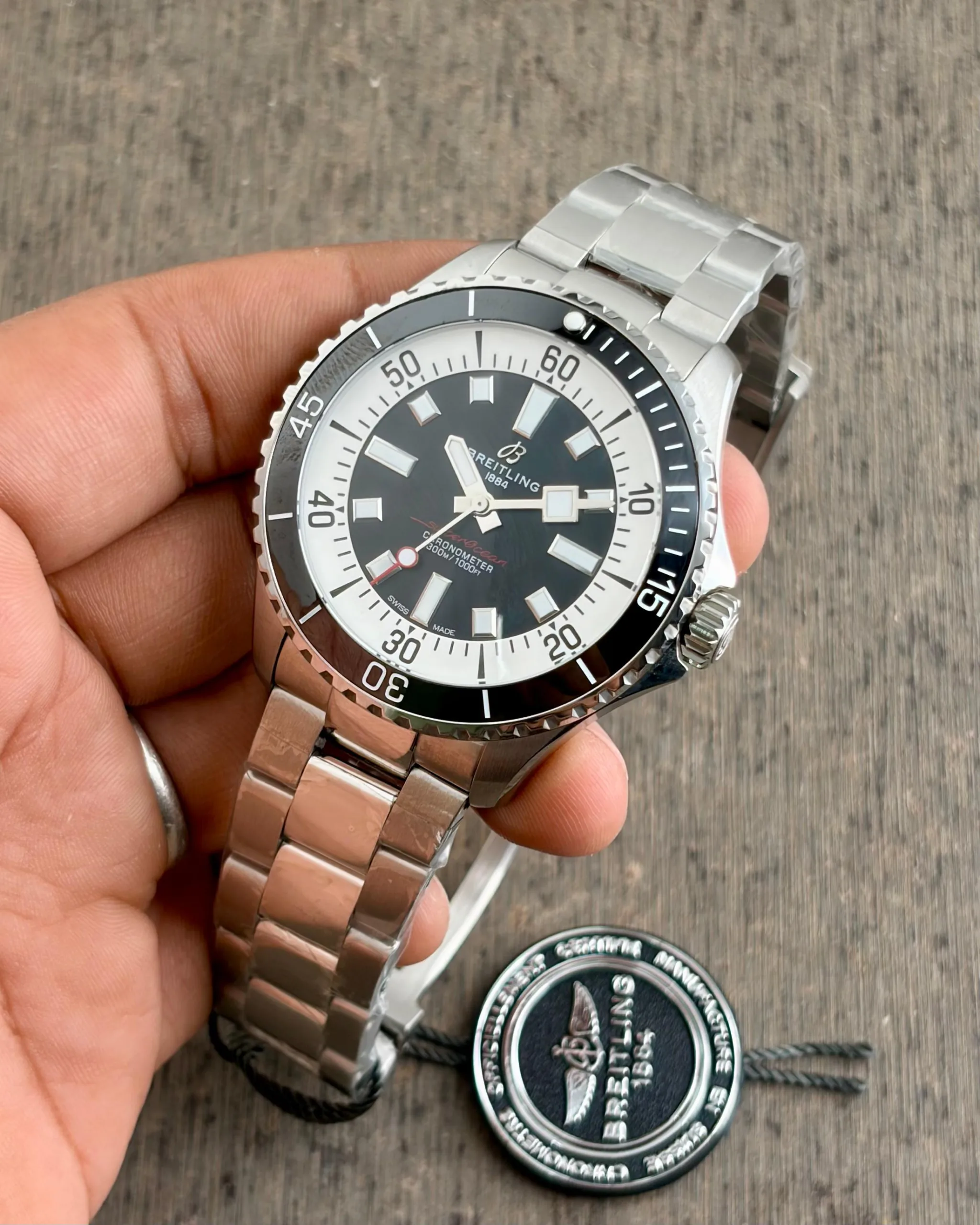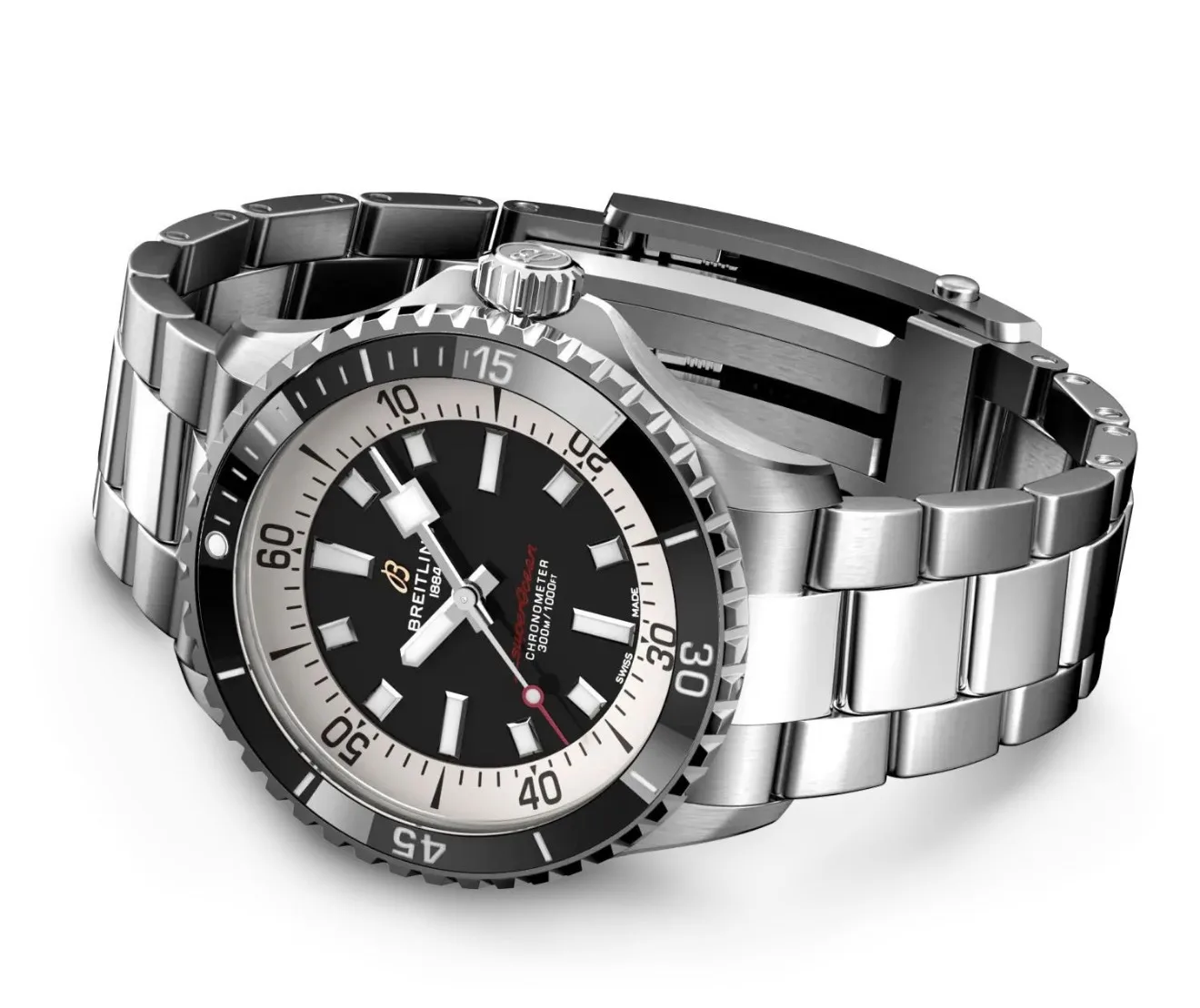 BREITLING Superocean 44 Automatic Watch for Men – Black Dial, Stainless Steel