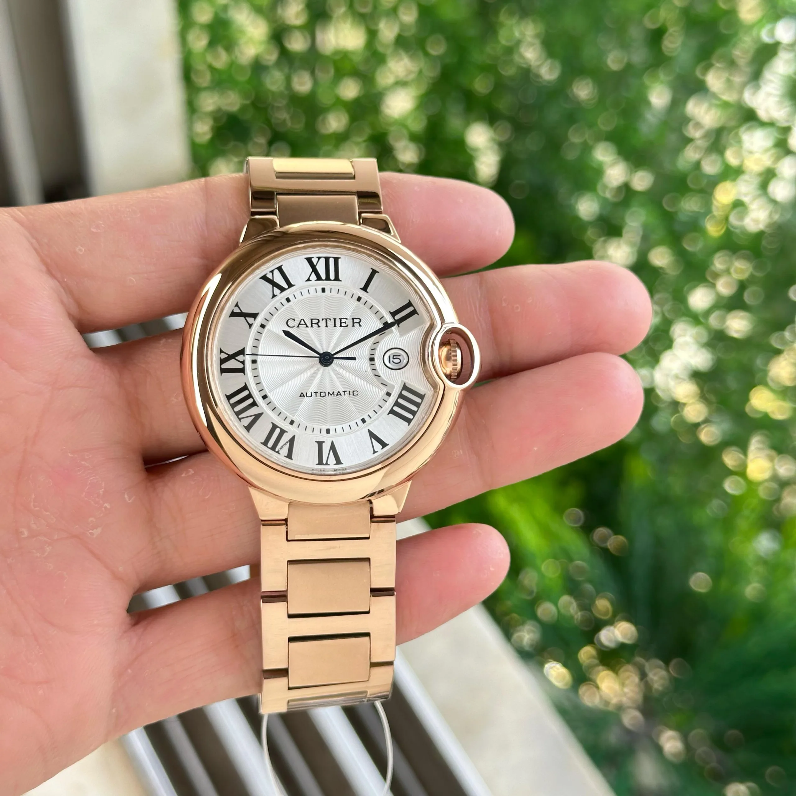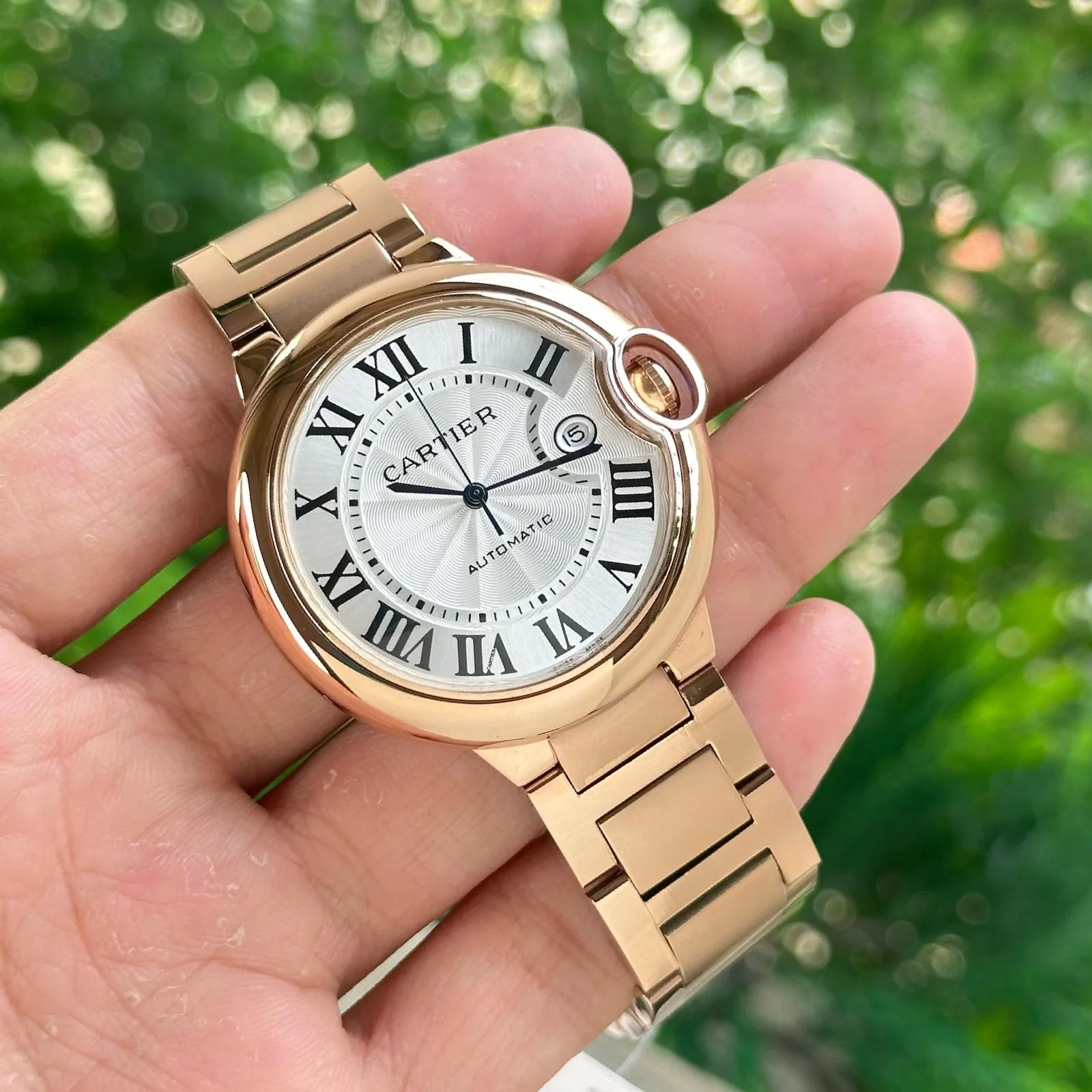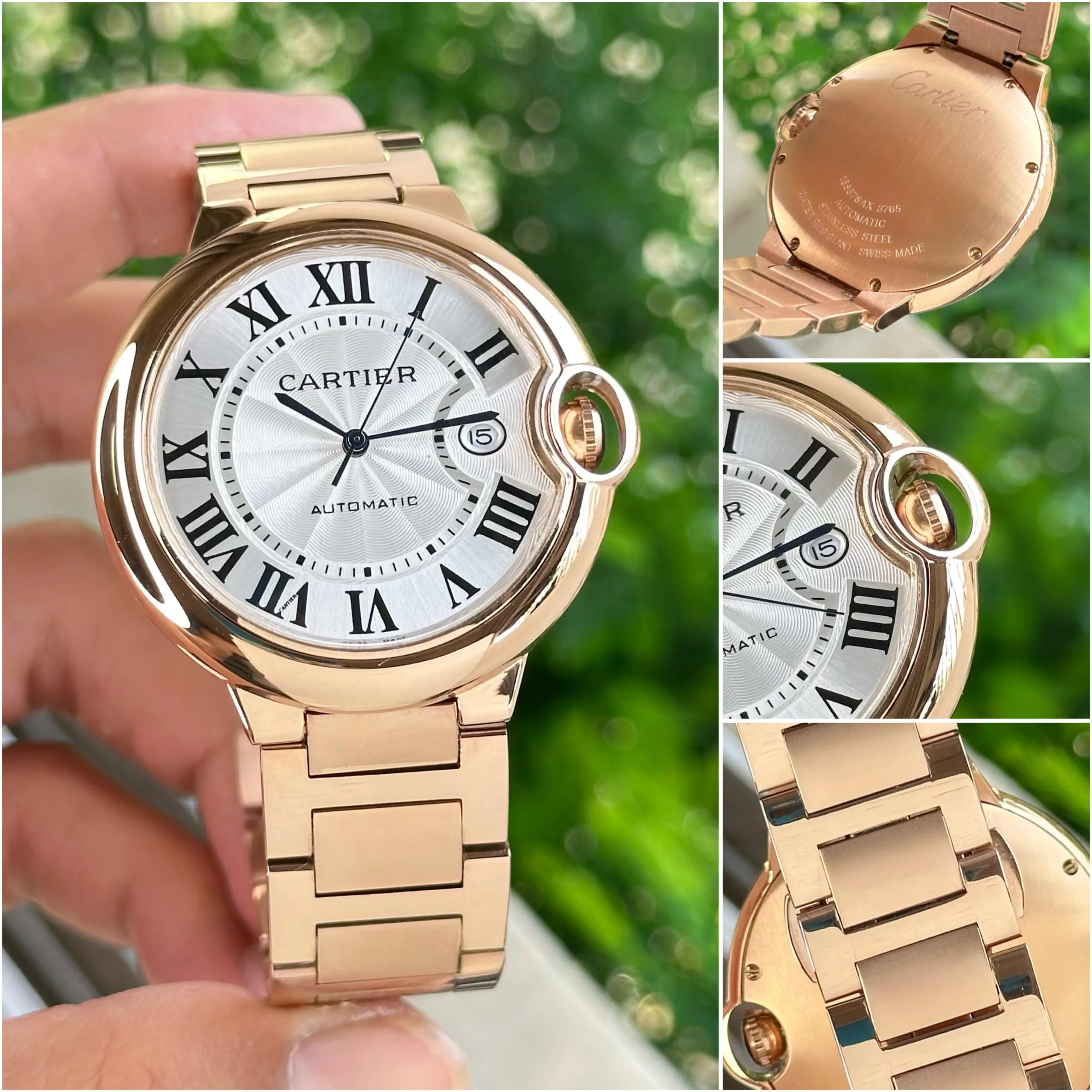 The Ballon Bleu stands out with its elegant round design, Roman numeral dial, and rose gold finish. It delivers a refined luxury look suitable for both formal and premium daily wear.