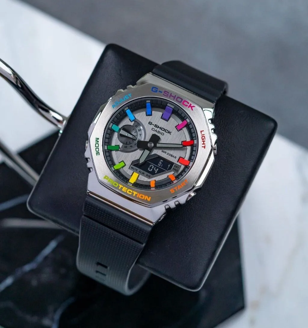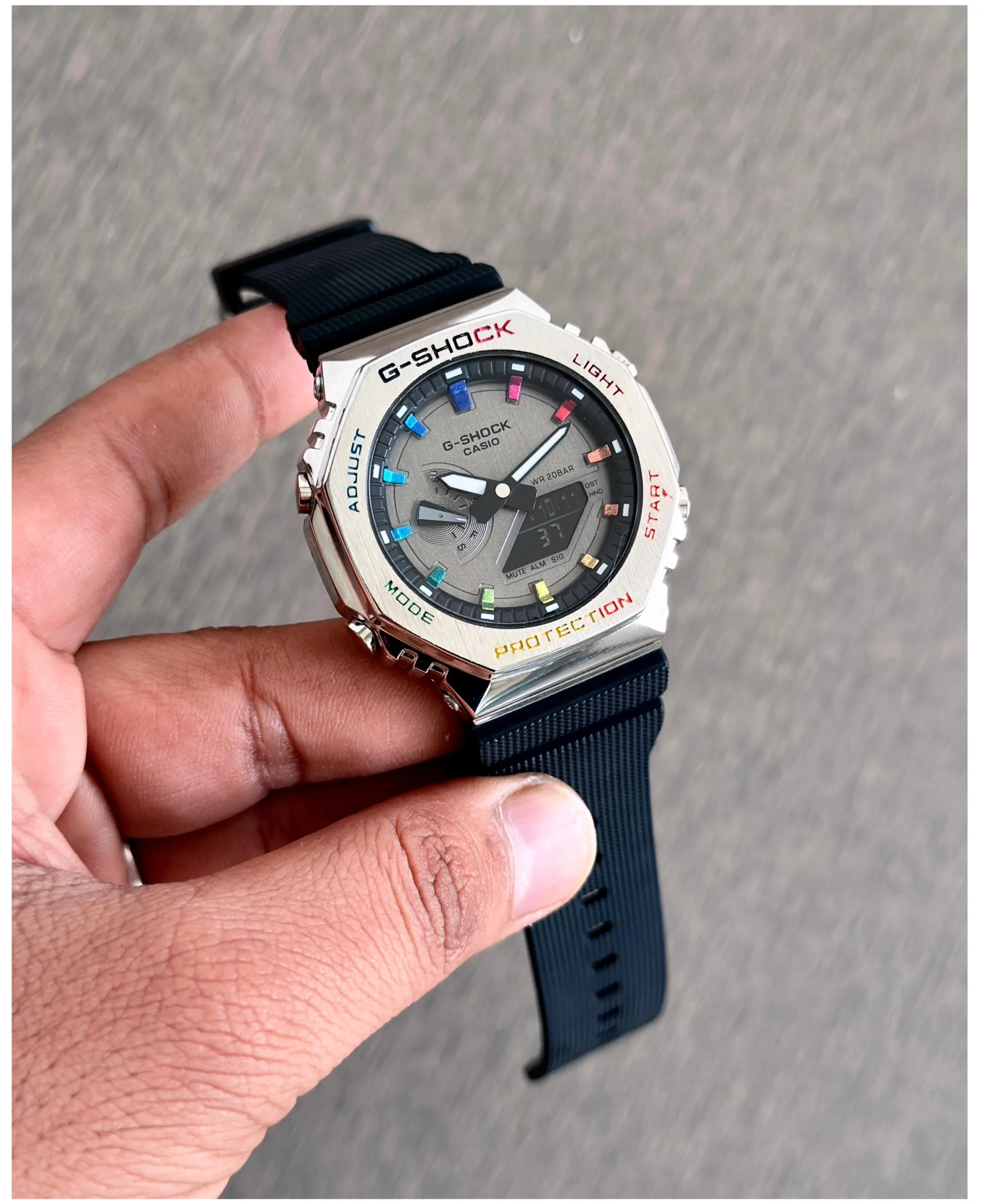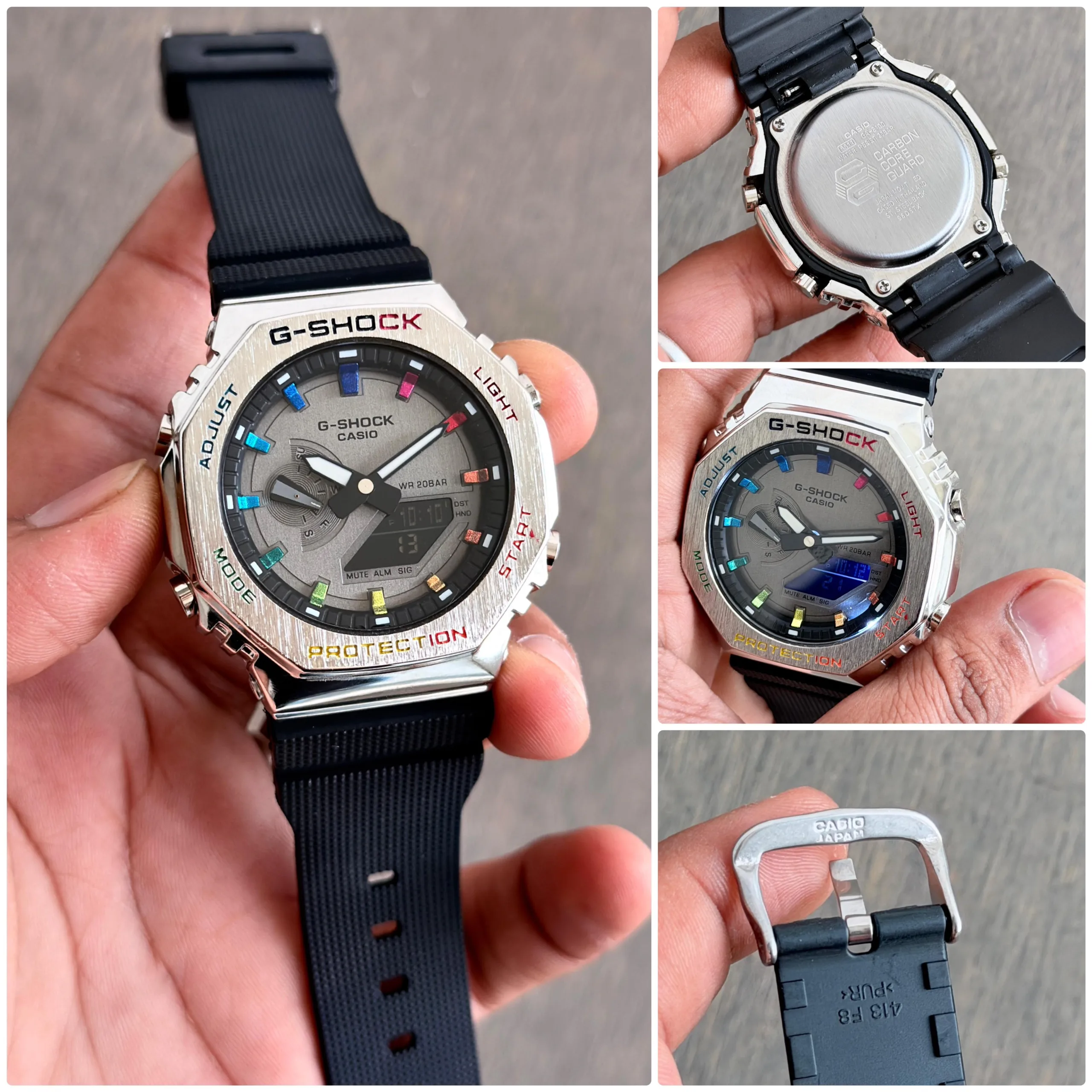 Engineered for toughness and style, this G-SHOCK is perfect for sports, travel, and daily wear. Its hybrid display and rugged construction make it a reliable companion for an active lifestyle while maintaining a premium modern look.