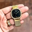 A stylish timepiece that blends modern fashion with dependable performance, perfect for women who appreciate classic black and gold combinations.