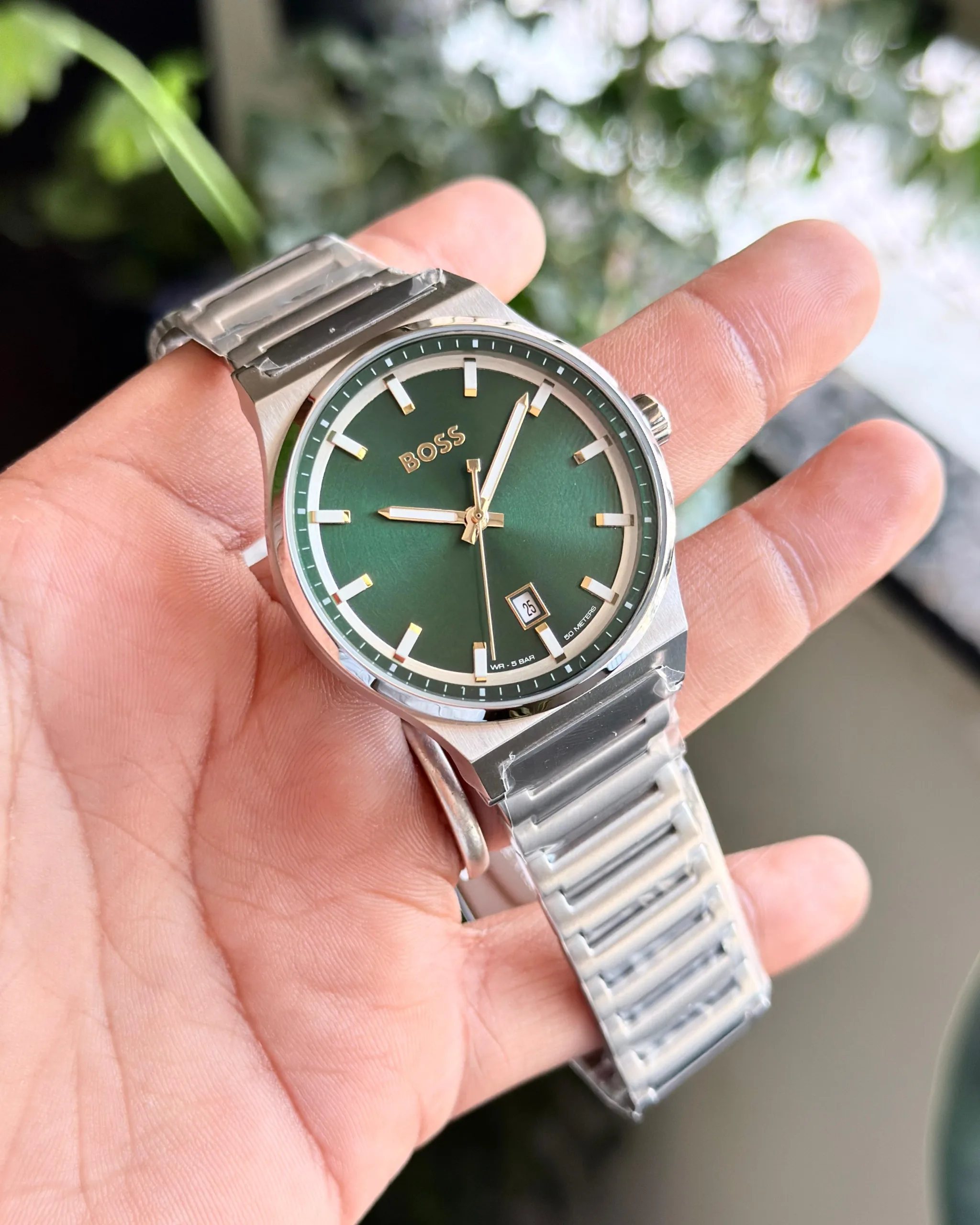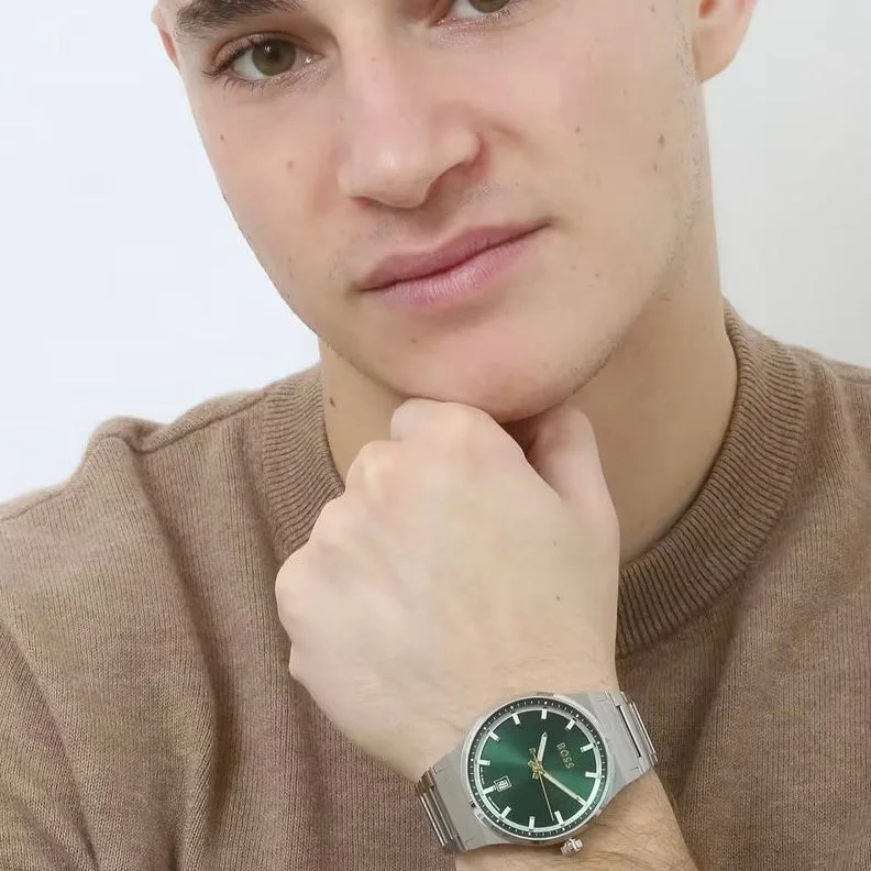 The luminous green dial paired with silver-tone detailing and mineral glass adds a sophisticated touch, while the matte silver bezel, crown, and linked bracelet complete its premium appeal. Finished with an original foldable clasp and stainless steel case back, this watch is part of the festive special authentic collection—now back in stock with updated pricing.