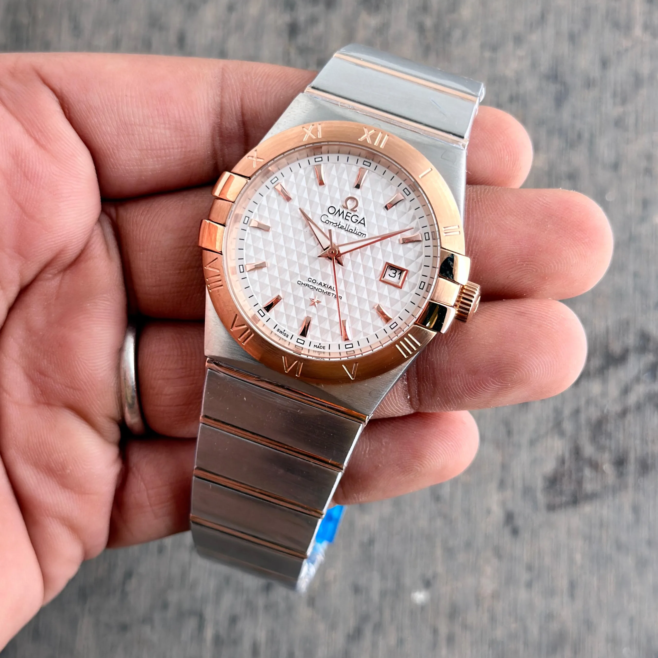 Experience timeless sophistication with the Omega Constellation, a classic men’s watch that reflects Omega’s legacy of precision and elegance. Designed with a bold yet refined aesthetic, this timepiece is perfect for both formal and everyday luxury wear.