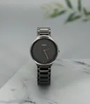 This RADO True Thinline-style watch stands out with its ultra-slim profile and artistic craftsmanship. The ceramic build ensures durability while maintaining a lightweight feel, making it an ideal choice for those who prefer understated luxury.