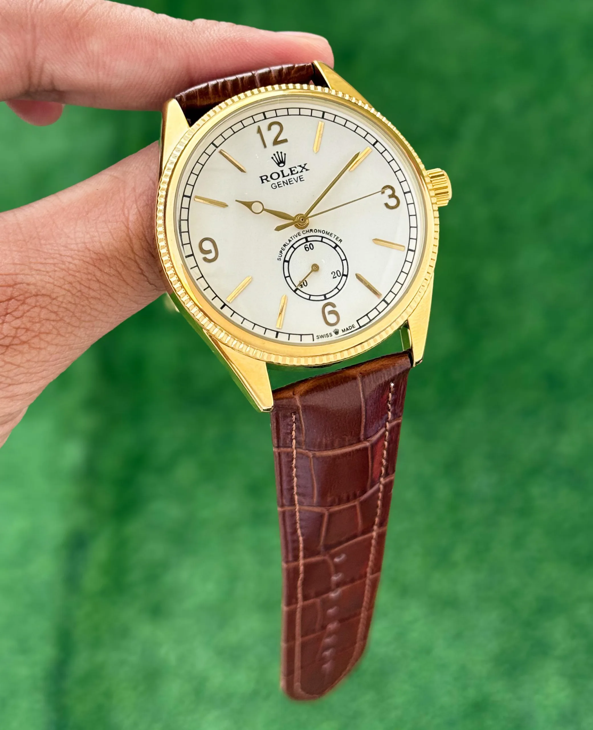 Make a strong impression with this Rolex Geneve inspired men’s watch, crafted for those who prefer bold style with a premium finish. Featuring a perfectly sized 43mm dial, this watch delivers a powerful wrist presence while maintaining a clean and classic look.